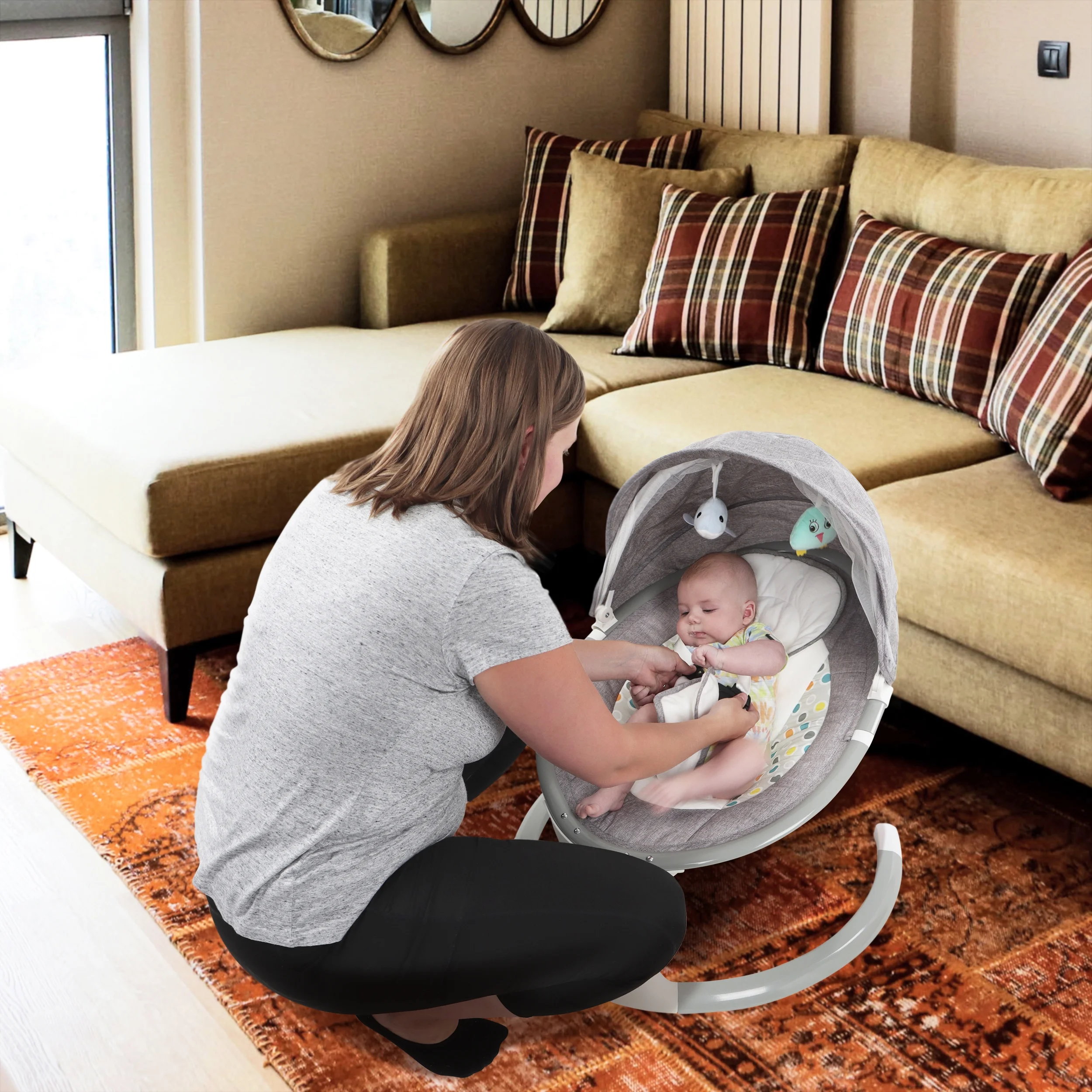 Why do so many new parents rely on baby swings for the first weeks and months of their baby’s lives? In the womb, your baby was in constant motion, moving every time you did—so the gentle, rhythmic motion of a baby swing is one of the ways to calm a fussy baby by providing them with a familiar sensation.